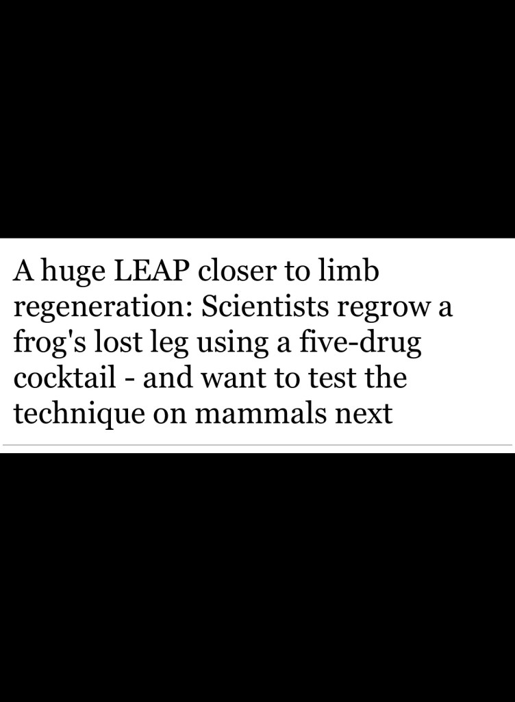 Today, some promising news in science. A leg has been re-generated on African-clawed frogs. This could very well bring hope to amputees. As the Daily Mail reports , the legs have been re-generated by a five-drug cocktail created by a team scientists at Tufts University and Harvard University’s Wyss Institute in Boston.