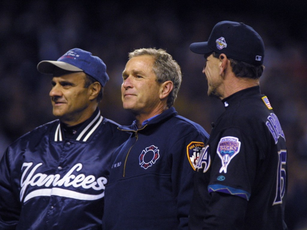 I remember being in the stands when President Bush landed via helicopter and those choppers were flying around the Stadium before Game Three as the President was land by the Press Gate for a historical first pitch. It was a surreal feeling as was that entire series following September 11th. I mean for the President to throw that pitch for a perfect strike was quite divine and itself a moment of healing and unity for NYC and America!