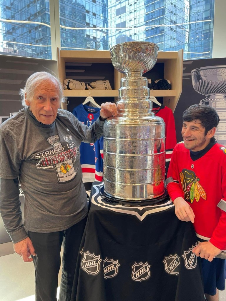 The other memorable moment was the opportunity for my dad and I to take a picture around the Stanley Cup as he donned his beloved Blackhawks gear at the NHL Store ! We were on our way to a baseball game, ironically, and I can also tell he was starting to not be feeling as well but he made the trek to get a pic with The Cup and made a memory that for me will last a lifetime, as Sam Rosen would say!